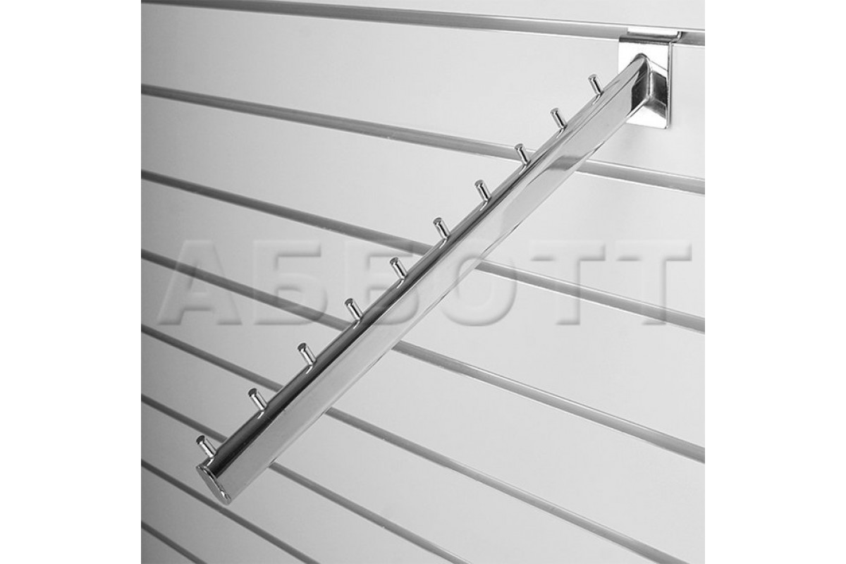 Предназначен для демонстрации одежды и аксессуаров, штырьки позволяют крепко держать плечики с товаром