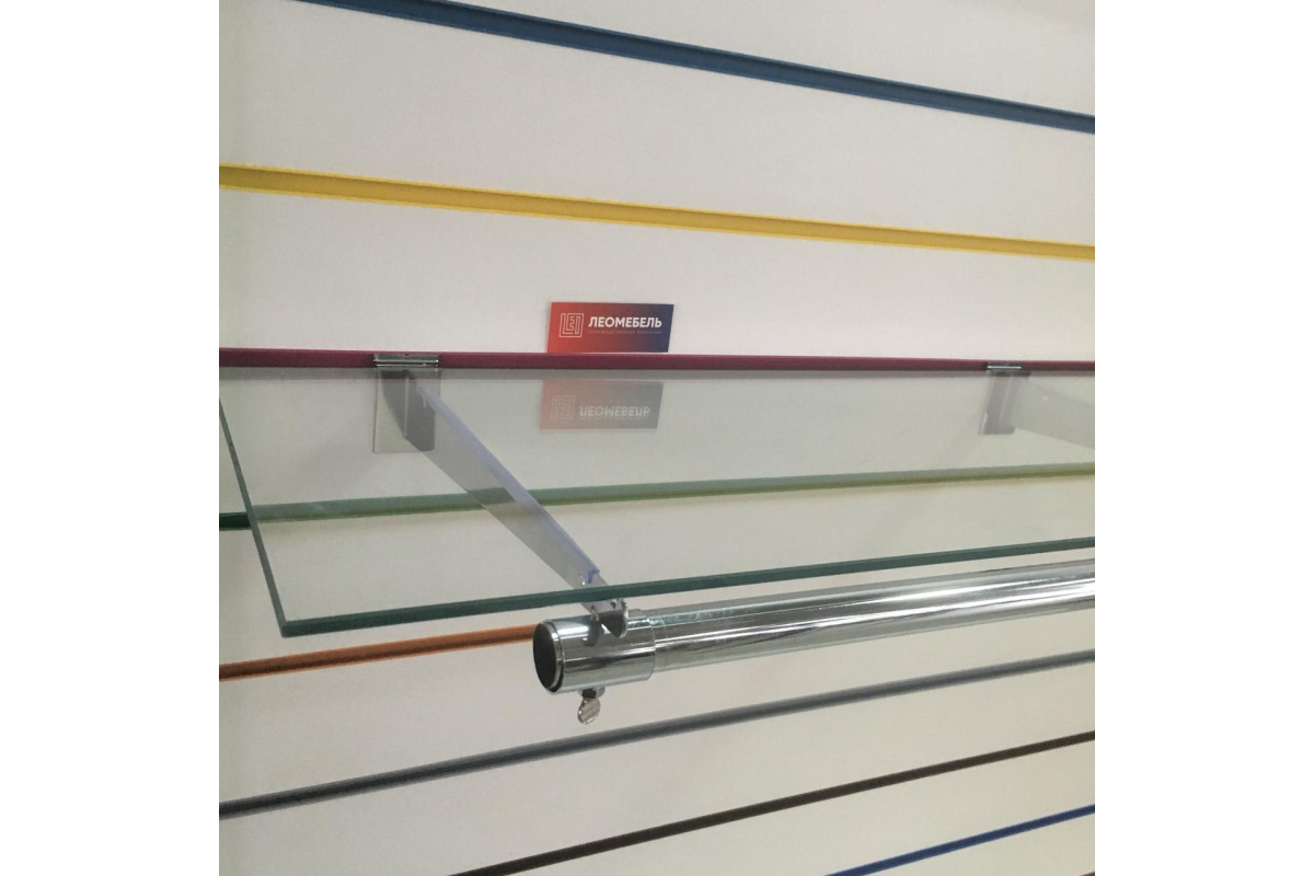 Держатель для полки глубиной 350мм из стекла и ЛДСП, с с кольцом под трубу d-25мм.
