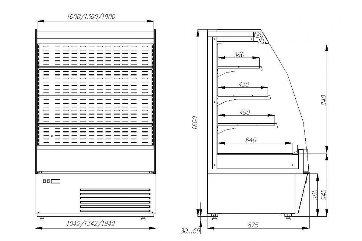 Холодильная горка гастрономическая Carboma F16-08 VM 1,0-2 0020 стеклопакет (Carboma 1600/875 ВХСп-1,0) (9005 цвет черный)