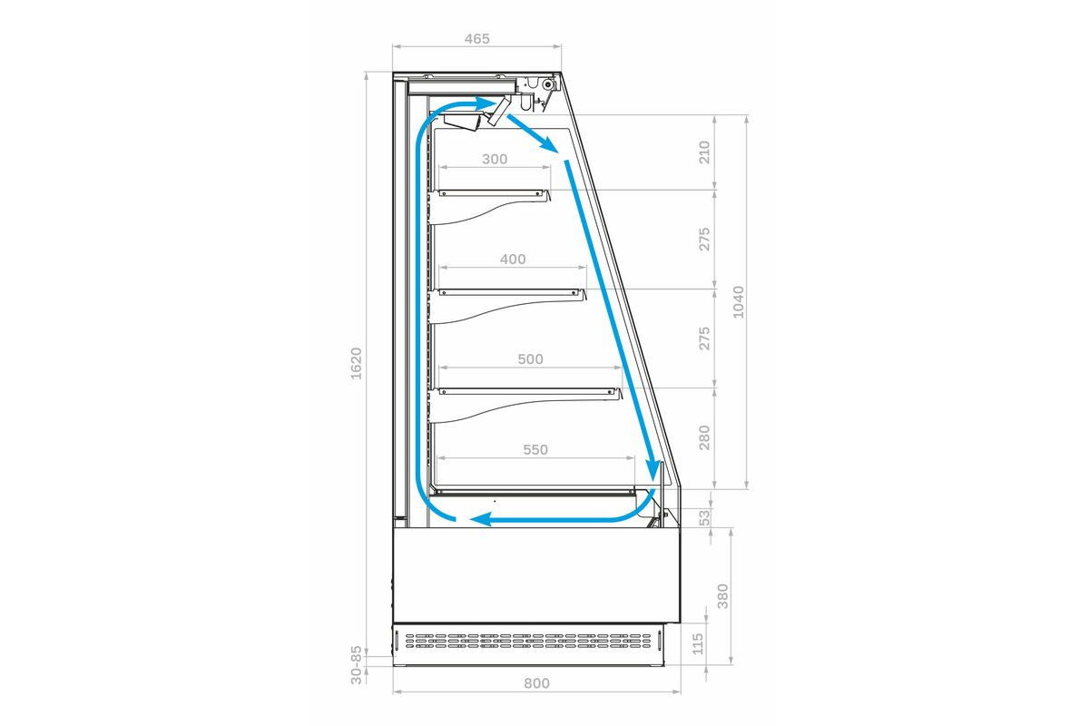 Холодильная горка гастрономическая Carboma F16-08 VM 1,3-2 0300 (Версия 2.0) (9006-9005) боковина металл идеальное компактное решение, которое элегантно впишется во все современные торговые зоны, от магазинов небольшой площадью до гипермаркетов. Прямые линии боковин подчеркивают современный дизайн. Витрина предназначена для различных категорий продуктов, включая: мясное ассорти, сыр, свежее молоко, фрукты, овощи, безалкогольные напитки и готовые к употреблению блюда, включая диетические. Полувертикальная витрина обеспечивает отличную видимость товара на уровне глаз покупателя, позволяет представить широкий ассортимент пищевых продуктов, оптимизируя пространство и повышая производительность. Многослойное расположение полок обеспечивает оптимальный обзор продукции и облегчает доступ к ней покупателю. Для большей видимости, полки полувертикальной горки могут быть наклонены на 15 или 30 градусов в соответствии с вашими потребностями в представлении продукта.