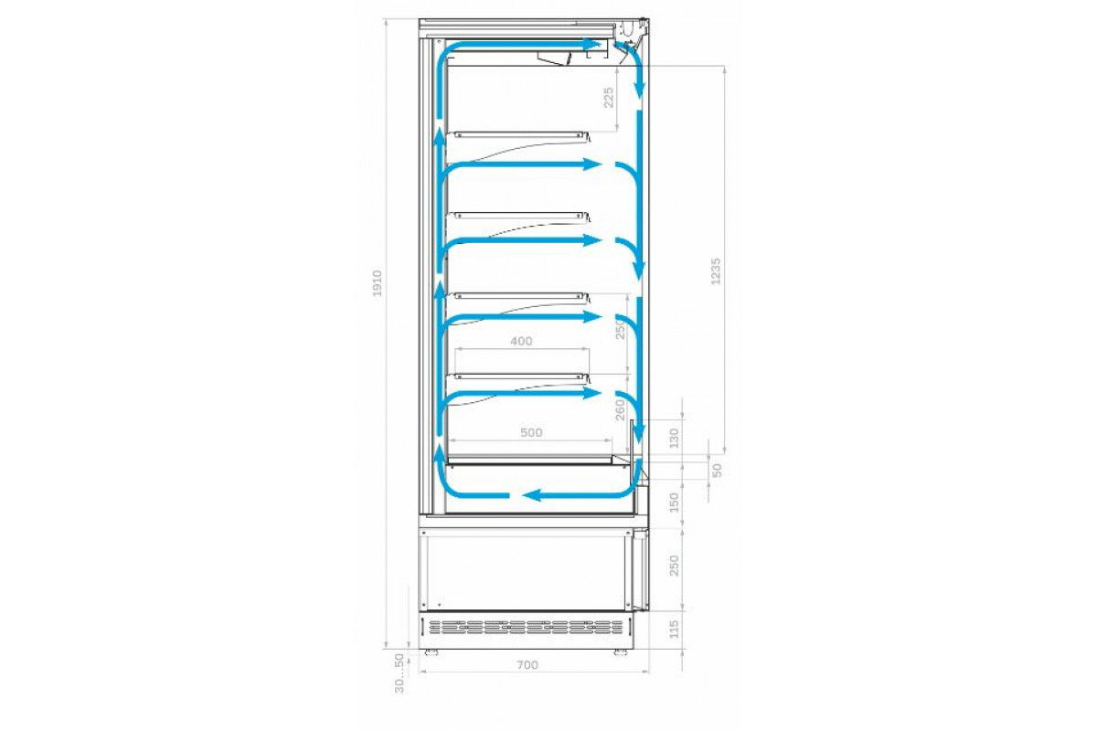 - Просвет между задней стенкой витрины и стеной помещения должен быть не менее 0,25 м;