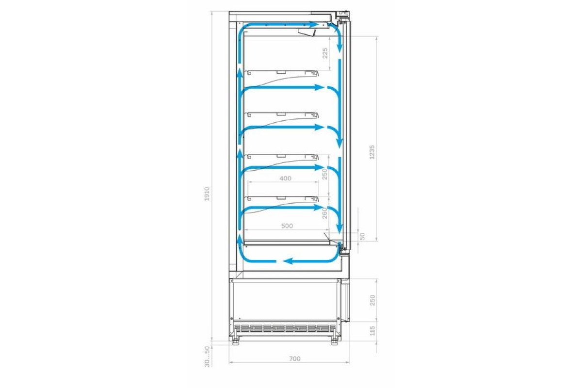- Витрина должна быть установлена не ближе 2 м от отопительных приборов. Запрещается эксплуатация витрины при попадании на нее прямых солнечных лучей, воздушных потоков от кондиционеров, вентиляторов и обогревателей;