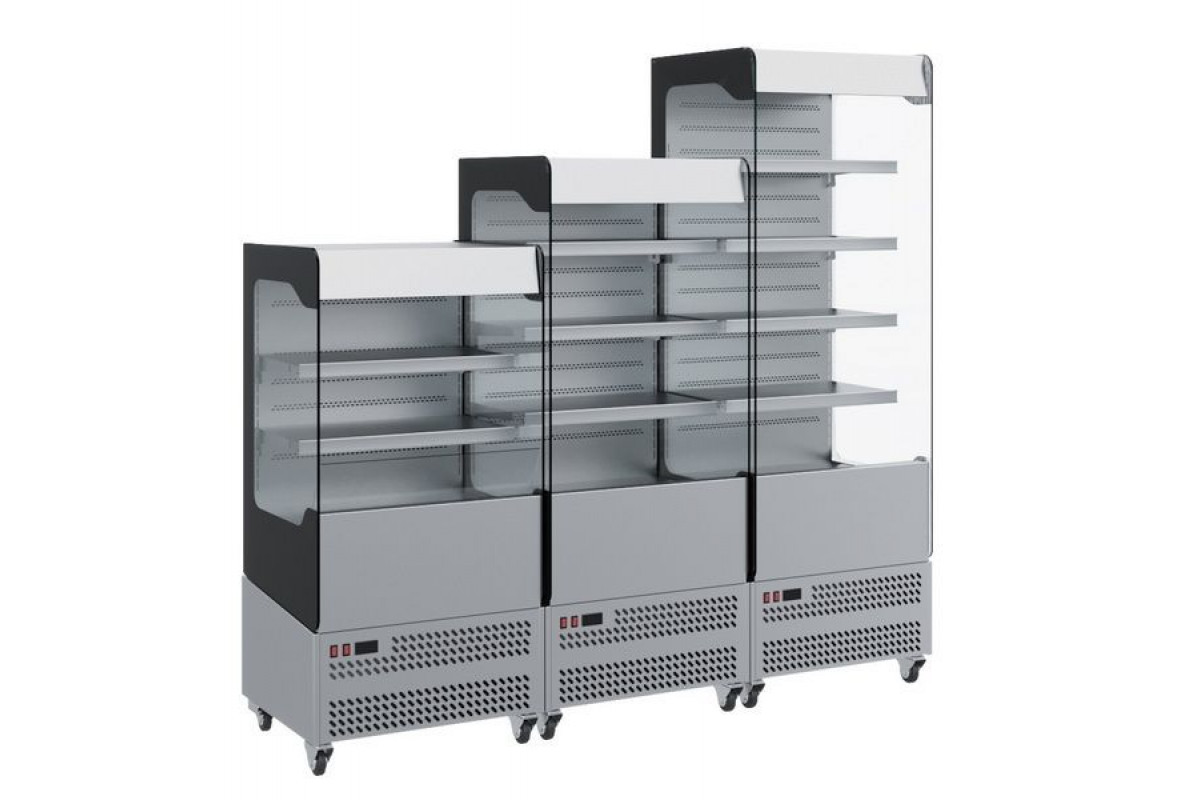 - Открытая выкладка – отсутствует фронтальное остекление, боковины из закаленного стекла со 100% обзором;