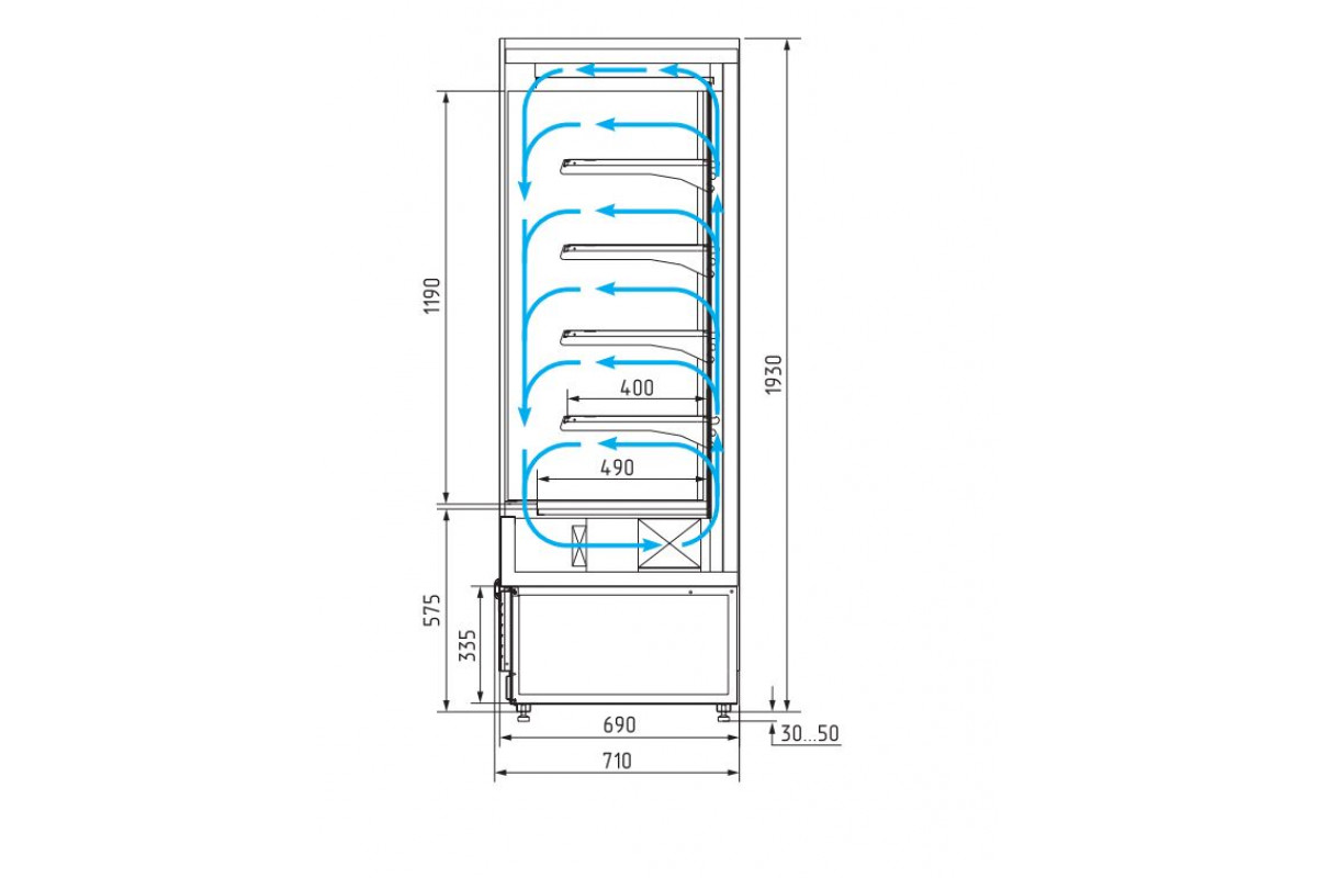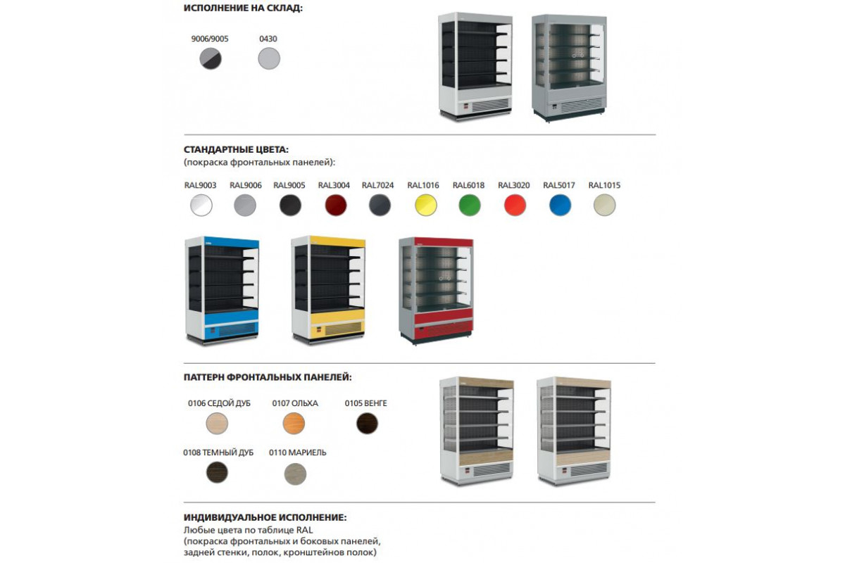 Холодильная горка гастрономическая Carboma FC20-07 VM 0,7-1 Light (фронт X0, цвет по схеме, фронт стандартный цвет)