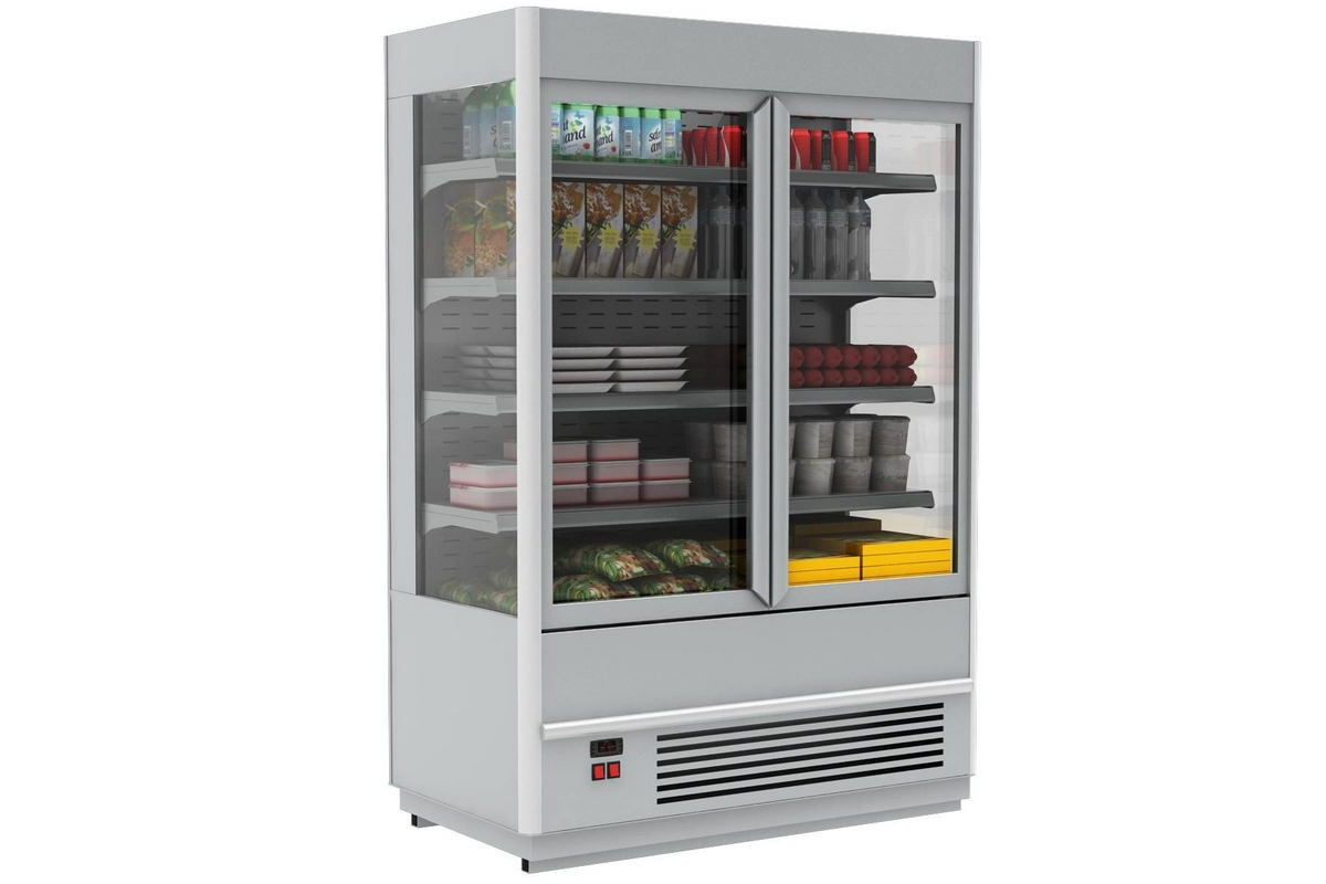 Холодильная горка гастрономическая Carboma F13-07 VM 1,0-2 0020 стеклопакет(1260/700 ВХСп-1,0(9006 цвет серый)
