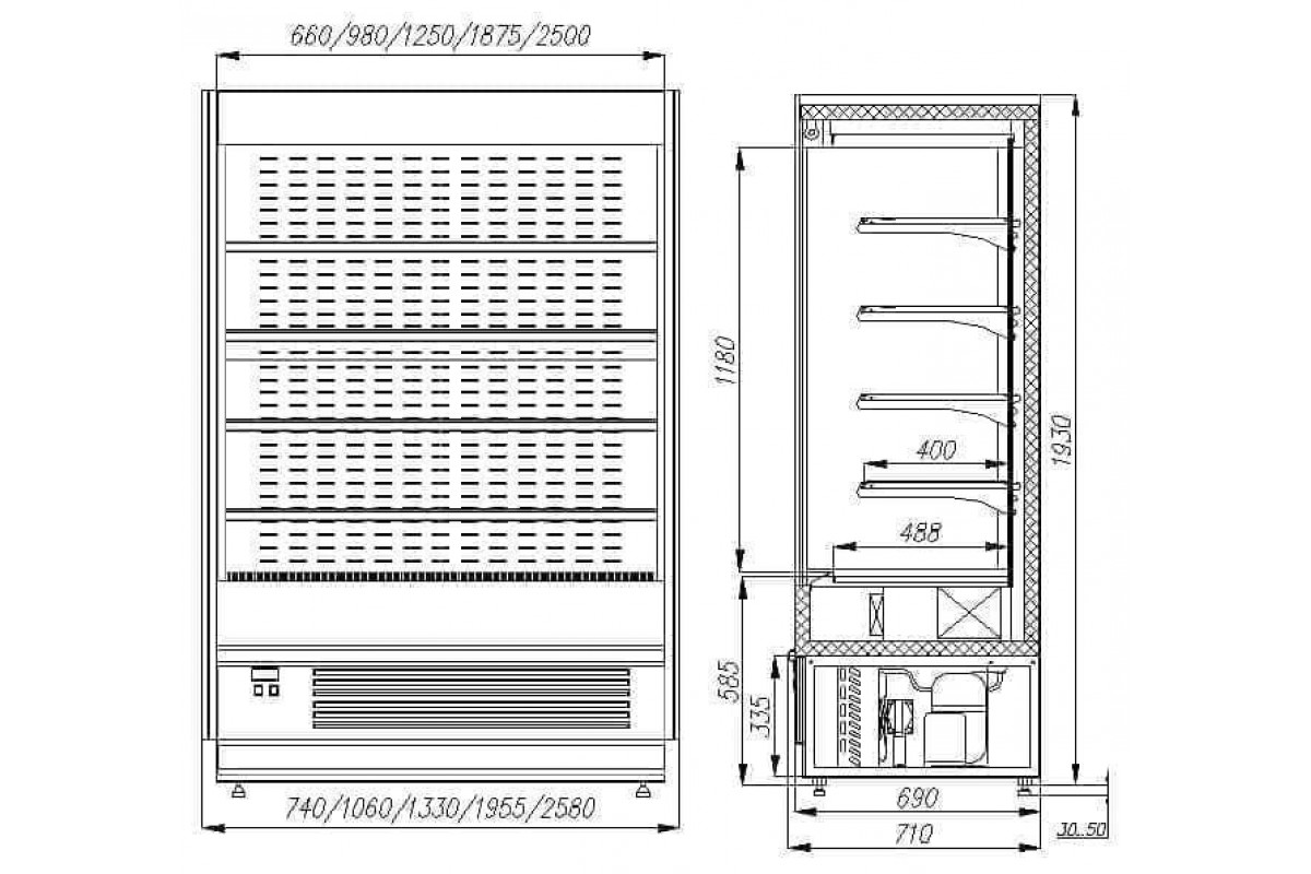 Холодильная горка гастрономическая Carboma FC20-07 VM 0,6-2 (Carboma Cube 1930/710 ВХСп-0,6, цвет по схеме, фронт стандартный цвет)