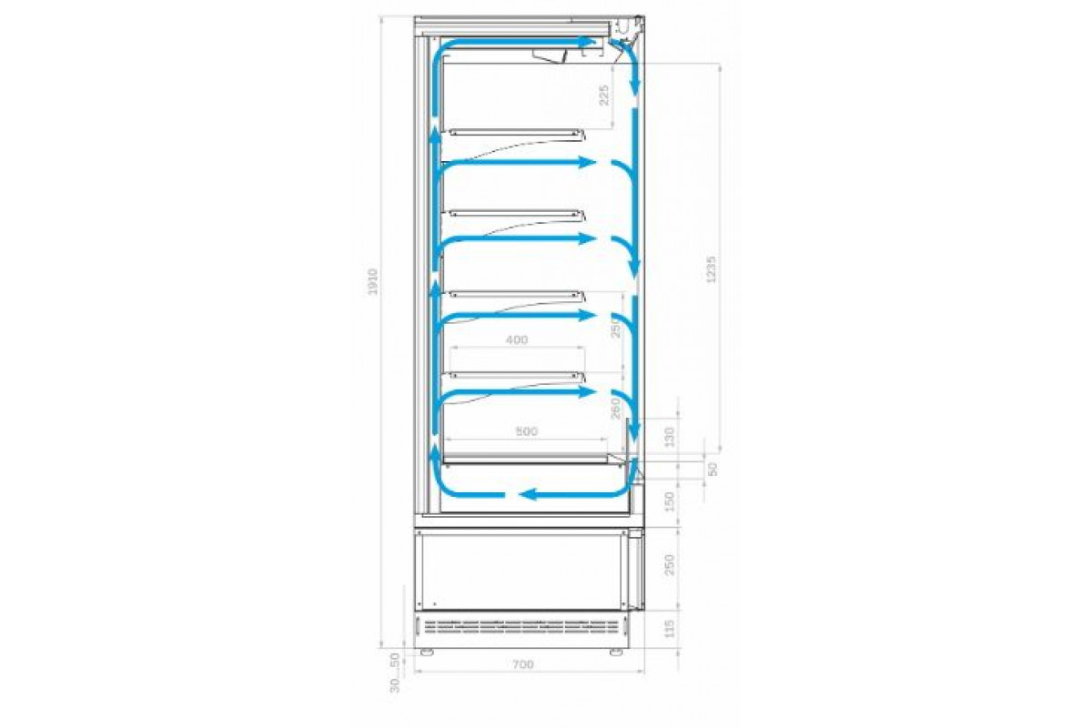- Витрина должна быть установлена не ближе 2 м от отопительных приборов. Запрещается эксплуатация витрины при попадании на нее прямых солнечных лучей, воздушных потоков от кондиционеров, вентиляторов и обогревателей;