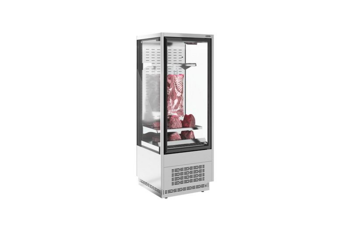 - Стеклянная дверь без рамок, сделанная по технологии FRAMELESS, обеспечивает широкий обзор и поддерживает оптимальные климатические условия для мясных продуктов;