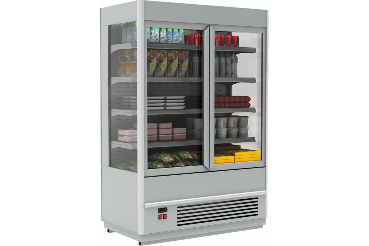 Конструкция горки стальная с ППУ изоляцией. Фронтальная часть оборудована 2-мя распашными стеклянными дверьми с ручками на всю высоту створок. Двери оснащены системой автодовода и фиксатором в открытом положении. Боковины со стеклопакетами. Импортный компрессор расположен в нижней части конструкции. Внутреннее наполнение — 4 ряда полок и вертикальная LED подсветка. Установлен защитный бампер. Управление посредством электронного контроллера Carel с температурной индикацией.