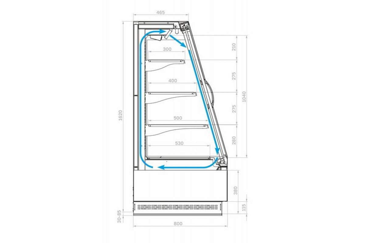 - Просвет между задней стенкой витрины и стеной помещения должен быть не менее 0,25 м;