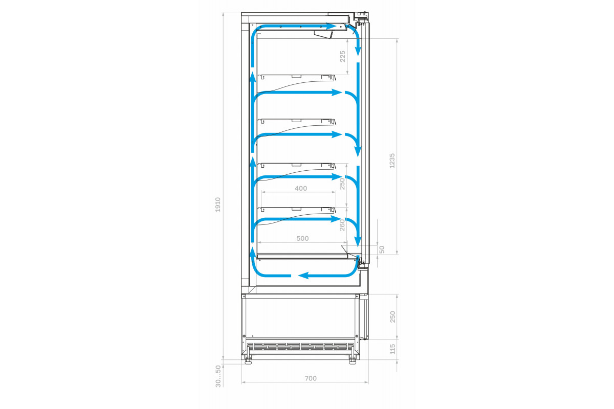 - Просвет между задней стенкой оборудования и стеной помещения должен быть не менее 0.25 м;