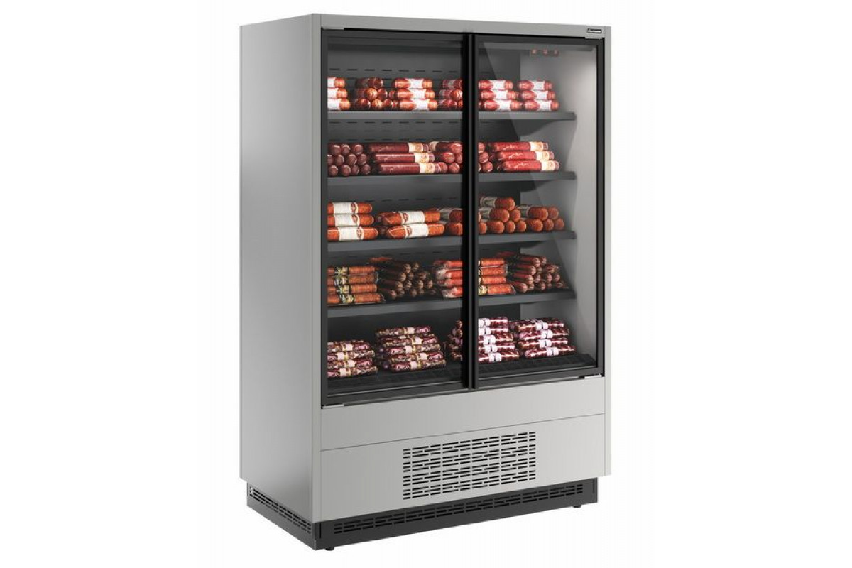 Холодильная горка универсальная Carboma FC20-07 VV 1,3-1 0300 STANDARD фронт X1 бок металл (версия 2.0) (9006-9005) предназначена для охлаждения, кратковременного хранения и демонстрации продуктов. Рекомендуется к применению в продовольственных магазинах, супермаркетах и на других предприятиях торговли, включая заведения с самообслуживанием. Максимальная экономия энергии и снижения теплопотерь за счёт стеклянных дверей.