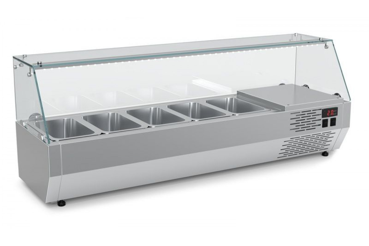 Холодильная витрина для ингредиентов Carboma A30 SM 1,2-G (VT2v-G (GN1/4)) предназначена для охлаждения, кратковременного хранения и демонстрации готовых блюд и ингредиентов для приготовления салатов и пиццы. Может использоваться как дополнительный элемент холодильных столов, столов для пиццы, барных стоек и прилавков. Рекомендуется к применению в кафе, барах, ресторанах, магазинах, супермаркетах и на других предприятиях торговли и общественного питания.