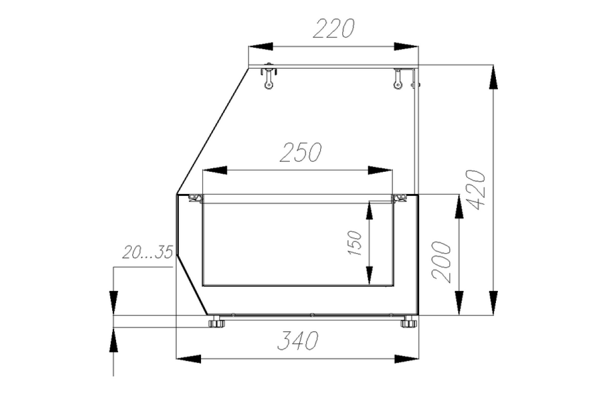 - Вмещается гастроёмкостей 7xGN 1/4. Комбинация может варьироваться. Глубина ёмкостей до 150 мм;