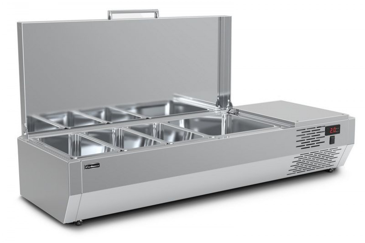 Холодильная витрина для ингредиентов Carboma A40 SM 1,2 с крышкой (3 GN1/3+1 GN1/2) предназначена для охлаждения, кратковременного хранения и демонстрации готовых блюд и ингредиентов для приготовления салатов и пиццы. Может использоваться как дополнительный элемент холодильных столов, столов для пиццы, барных стоек и прилавков. Рекомендуется к применению в кафе, барах, ресторанах, магазинах, супермаркетах и на других предприятиях торговли и общественного питания.