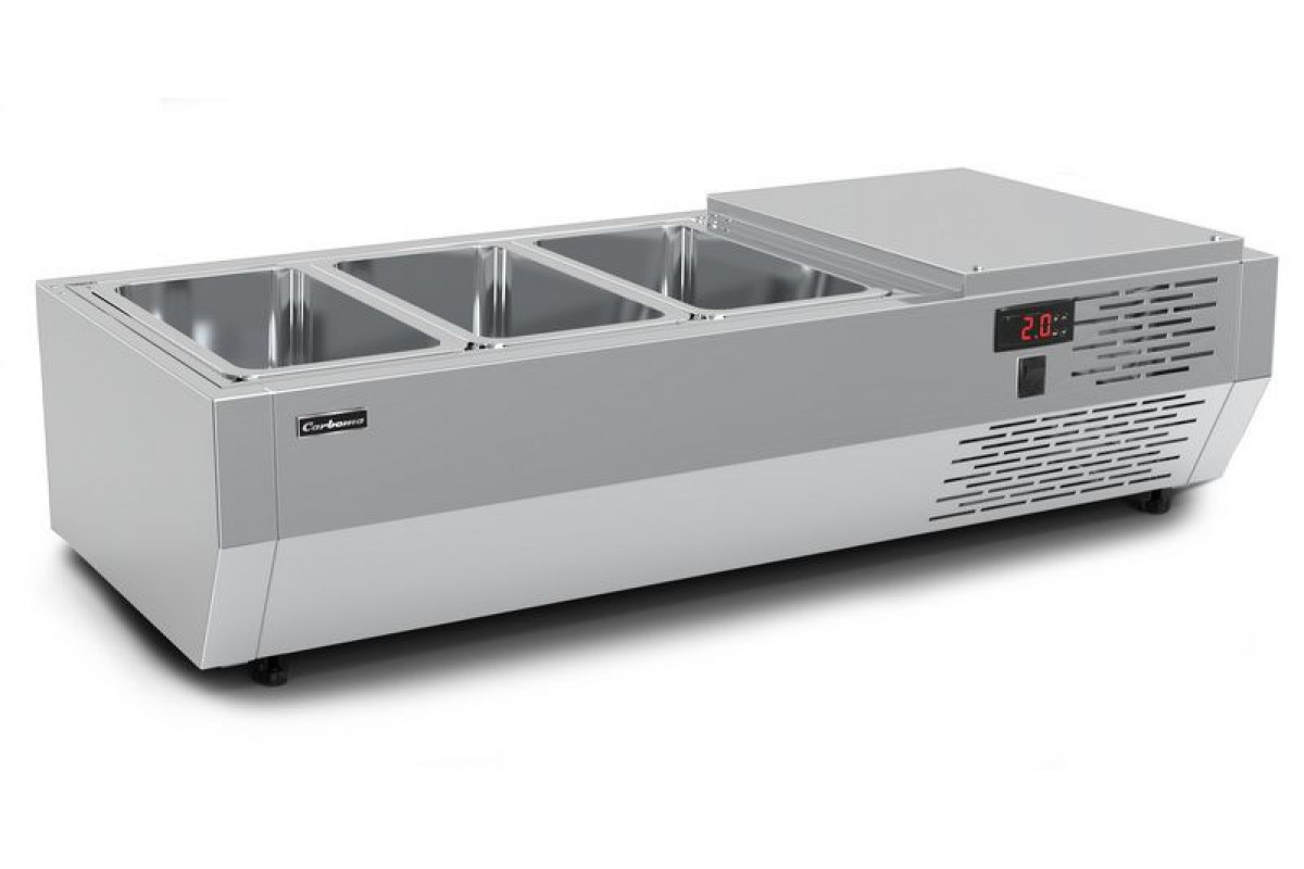 Холодильная витрина для ингредиентов Carboma A40 SM 0,9 (VTI2-G (GN1/3)) предназначена для охлаждения, кратковременного хранения и демонстрации готовых блюд и ингредиентов для приготовления салатов и пиццы. Может использоваться как дополнительный элемент холодильных столов, столов для пиццы, барных стоек и прилавков. Рекомендуется к применению в кафе, барах, ресторанах, магазинах, супермаркетах и на других предприятиях торговли и общественного питания.