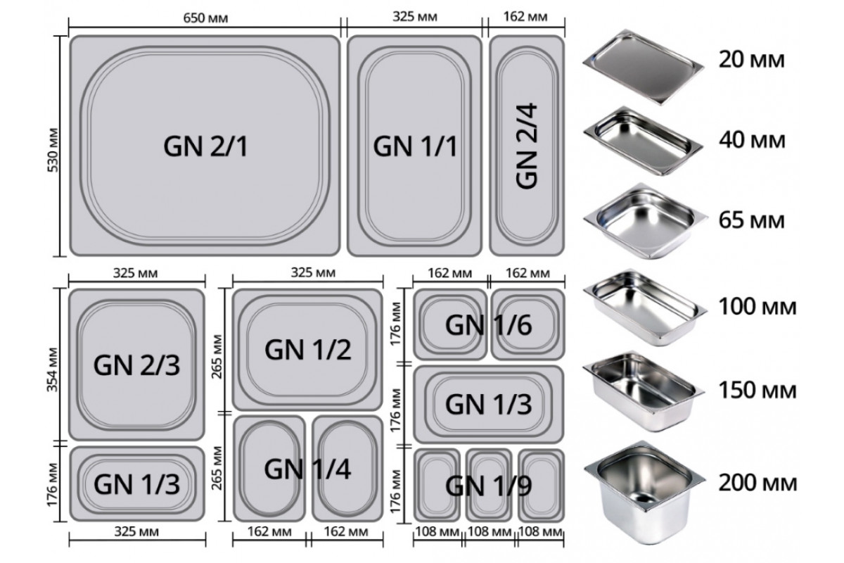 - Глубина гастроёмкостей: не более 150 мм;