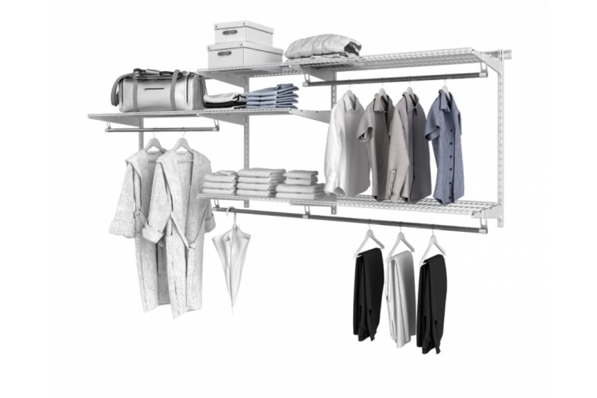 Комплекты гардеробной системы Титан GS - 350 и Титан GS-450 - это готовое решение. Система собирается в 5 разных конфигурациях, что позволяет подстраивать ее под размеры помещения и ориентироваться на личные пожелания по расположению отдельных элементо