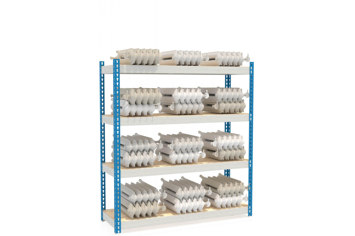 - Стеллаж поставляется в разобранном виде. Балки и стойки упакованы в стрейч пленку.
