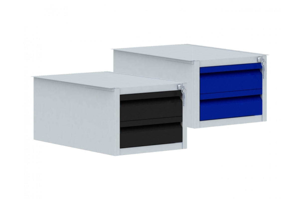 Подвесная тумба Т-ВПЭ предназначена для крепления к верстаку ВП-Э. Может использоваться как с верстаком, так и как отдельный элемент металлического мебели. Состоит из двух выдвижных ящиков, запирающихся на общий замок. Нагрузка на ящик до 30 кг. Вариан