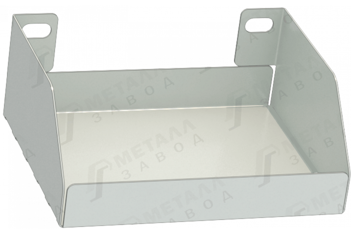 Полка изготавливается из холоднокатаной стали толщиной 0.8мм. Выполнена в виде небольшой коробчатой конструкции с боковыми ребрами. Они добавляют конструкции дополнительную жесткость и исключают выпадение предметов.