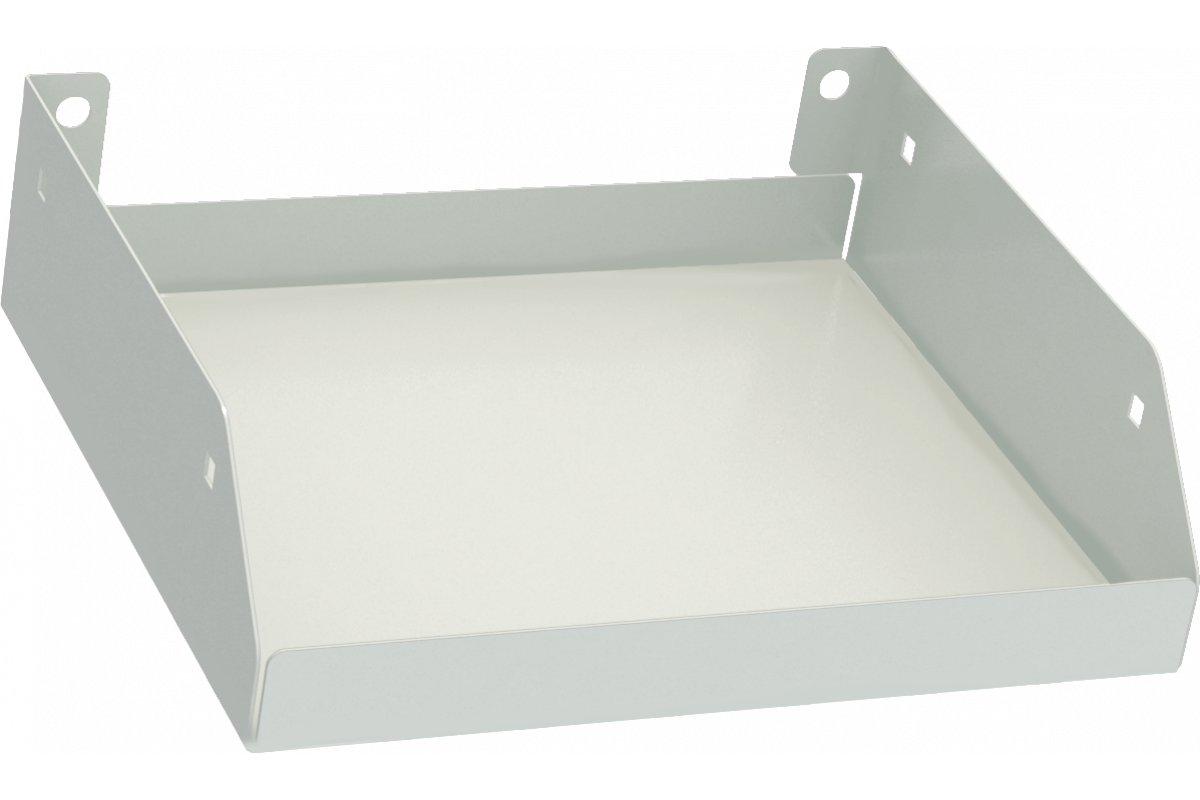 Полка изготавливается из холоднокатаной стали толщиной 0.8мм. Выполнена в виде небольшой коробчатой конструкции с боковыми ребрами. Они добавляют конструкции дополнительную жесткость и исключают выпадение предметов.