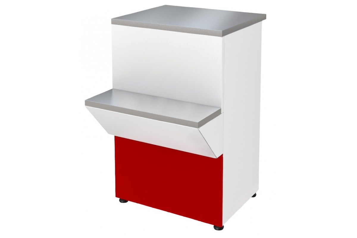 Прилавок расчетно-кассовый неохлаждаемый предназначен для работы продавца с покупателями; наличие полочки у прилавка облегчает покупателю с сумками процесс покупки