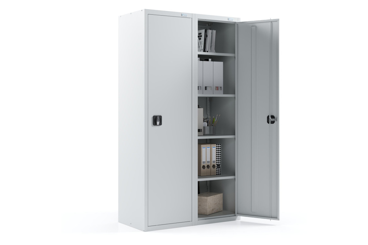 •Металлический архивный шкаф ШХА-100 сборно-разборный (2 секции, две распашные двери) комплектуется: