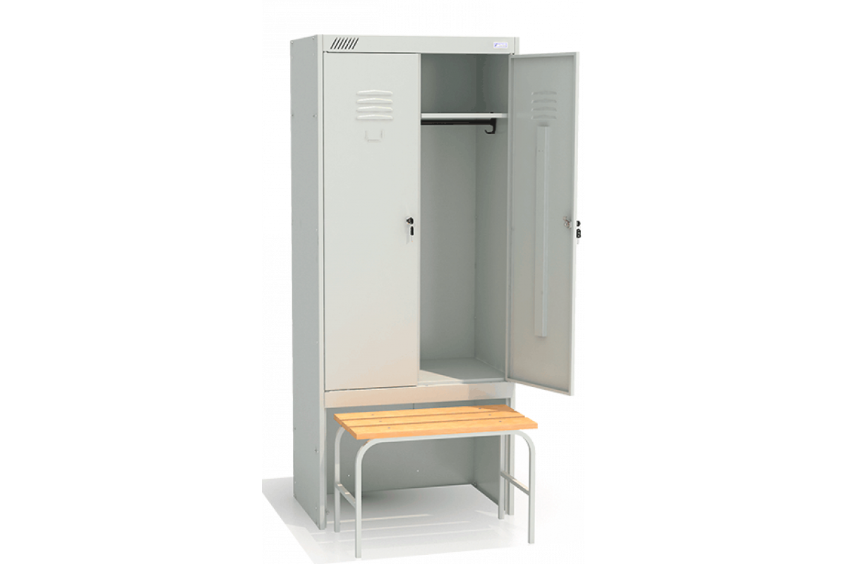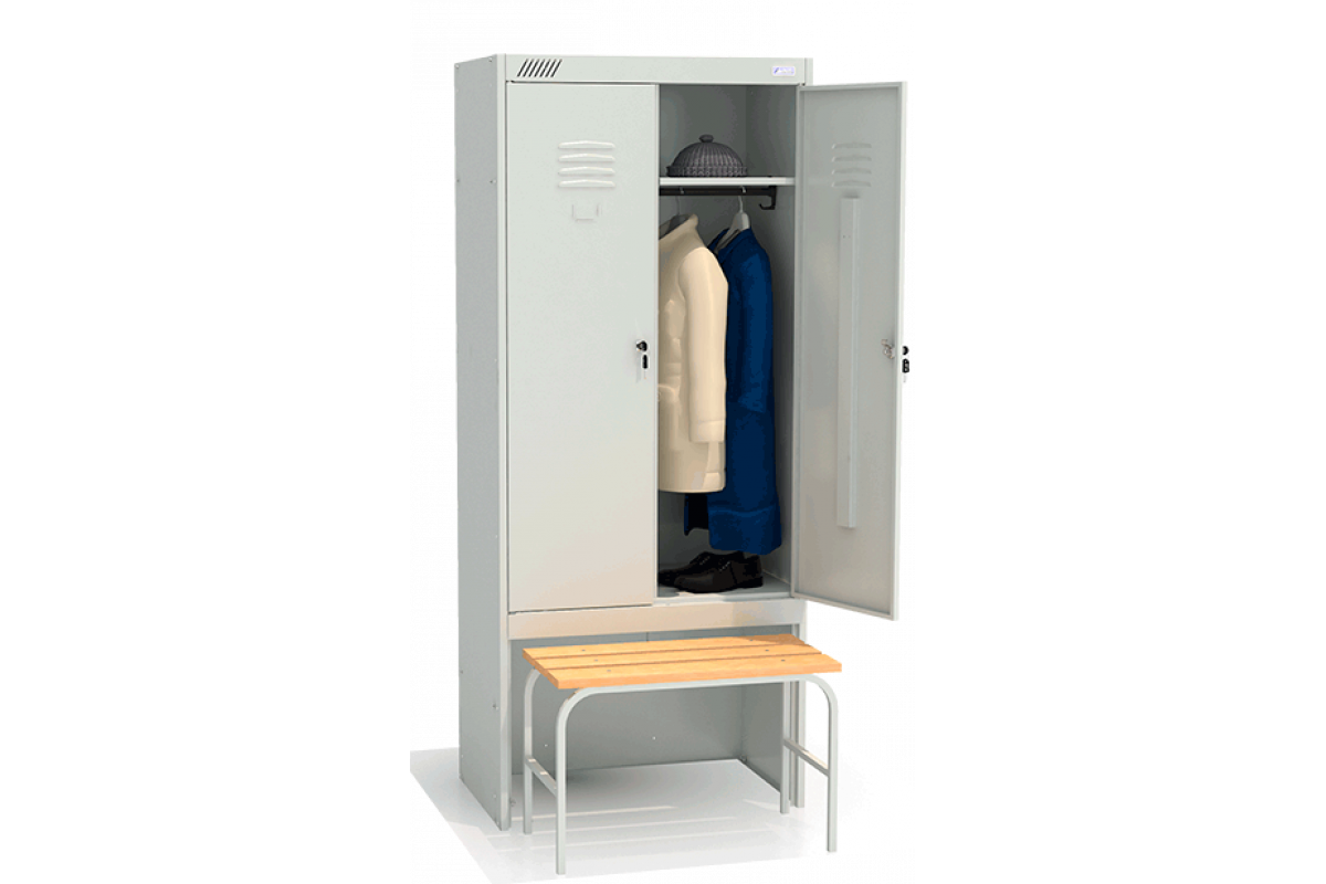 - Комплектуется двумя замками повышенной секретности, двумя полками под головные уборы, двумя перекладинами, четырьмя крючками.