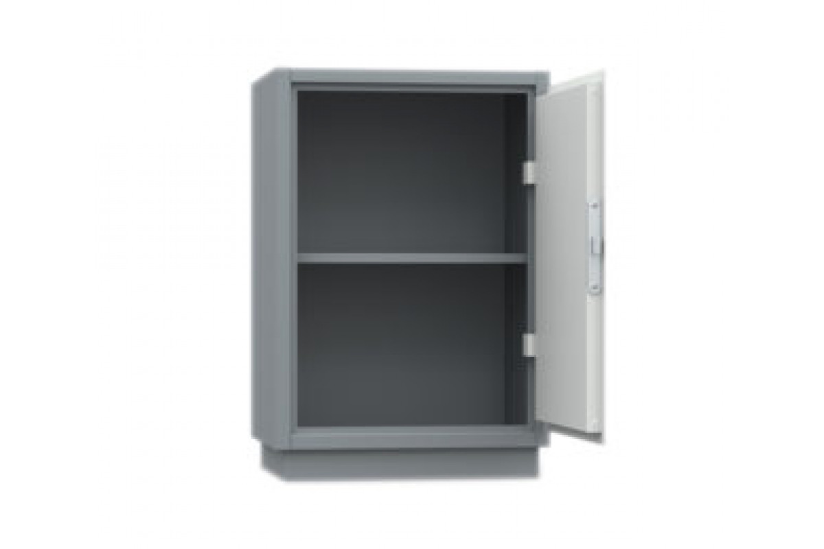 Съёмная полка позволяет хранить крупные предметы. Дверь шкафа имеет усиленную конструкцию. Безопасность содержимого обеспечивает замок сувальдного типа (3 ключа в комплекте).