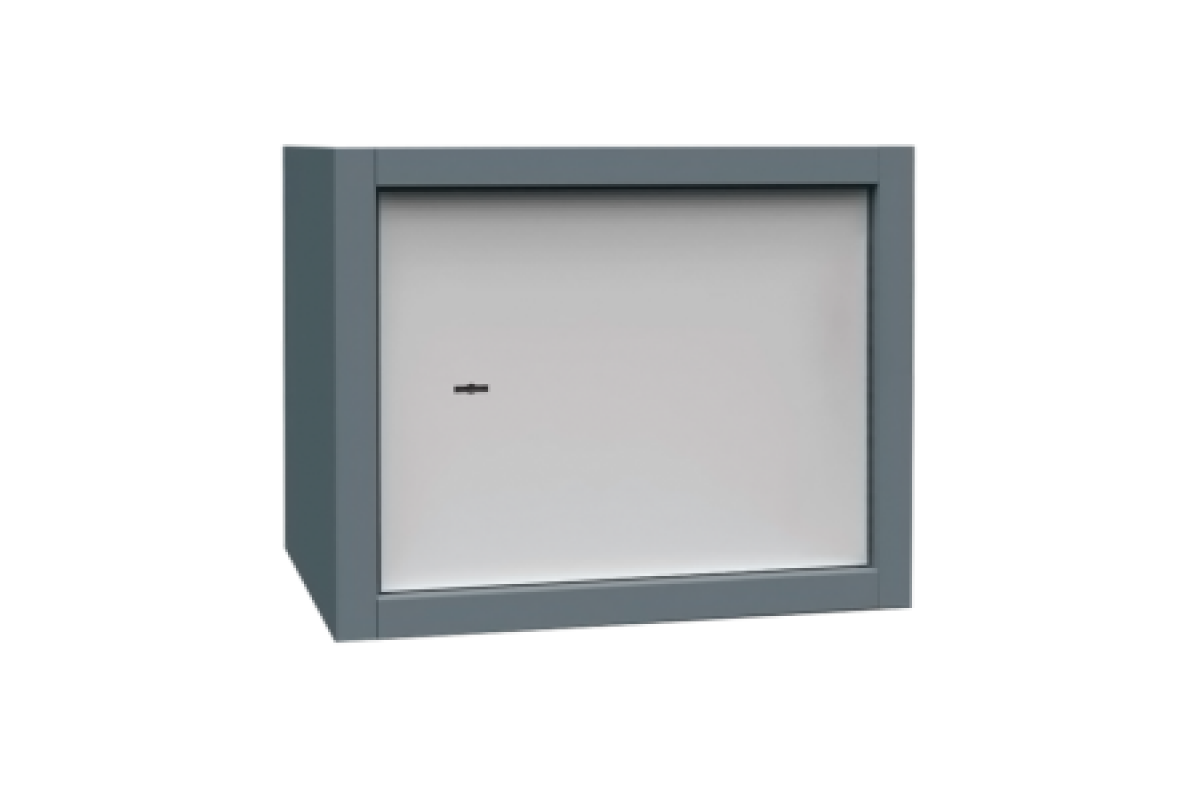 Вся линейка бухгалтерских шкафов окрашена в два цвета: корпус – RAL 7011, дверь — RAL7035.