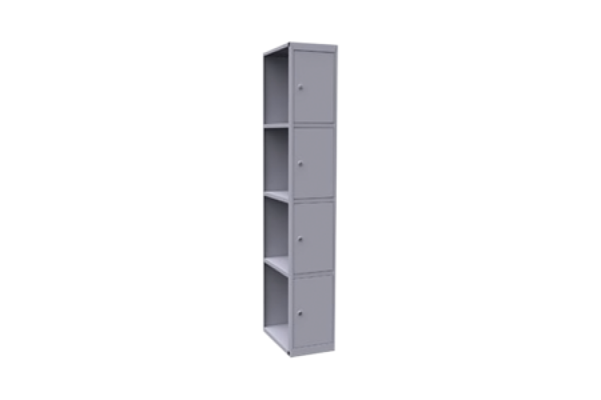 Шкаф имеет 4 ячейки размером 440х300х500 мм каждая. Вместительные габариты ячеек позволяют комфортно размещать в них пакеты и сумки средних размеров.
