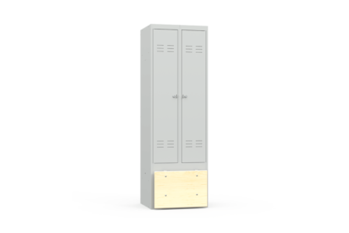 Шкафы данной модели, как конструктор, который можно собрать на свое усмотрение, укомплектовав ту или иную модель дополнительной полкой для обуви, табличками для личных карточек, скошенной крышей и специальными подставками для удобства переодевания и уборки шкафов.