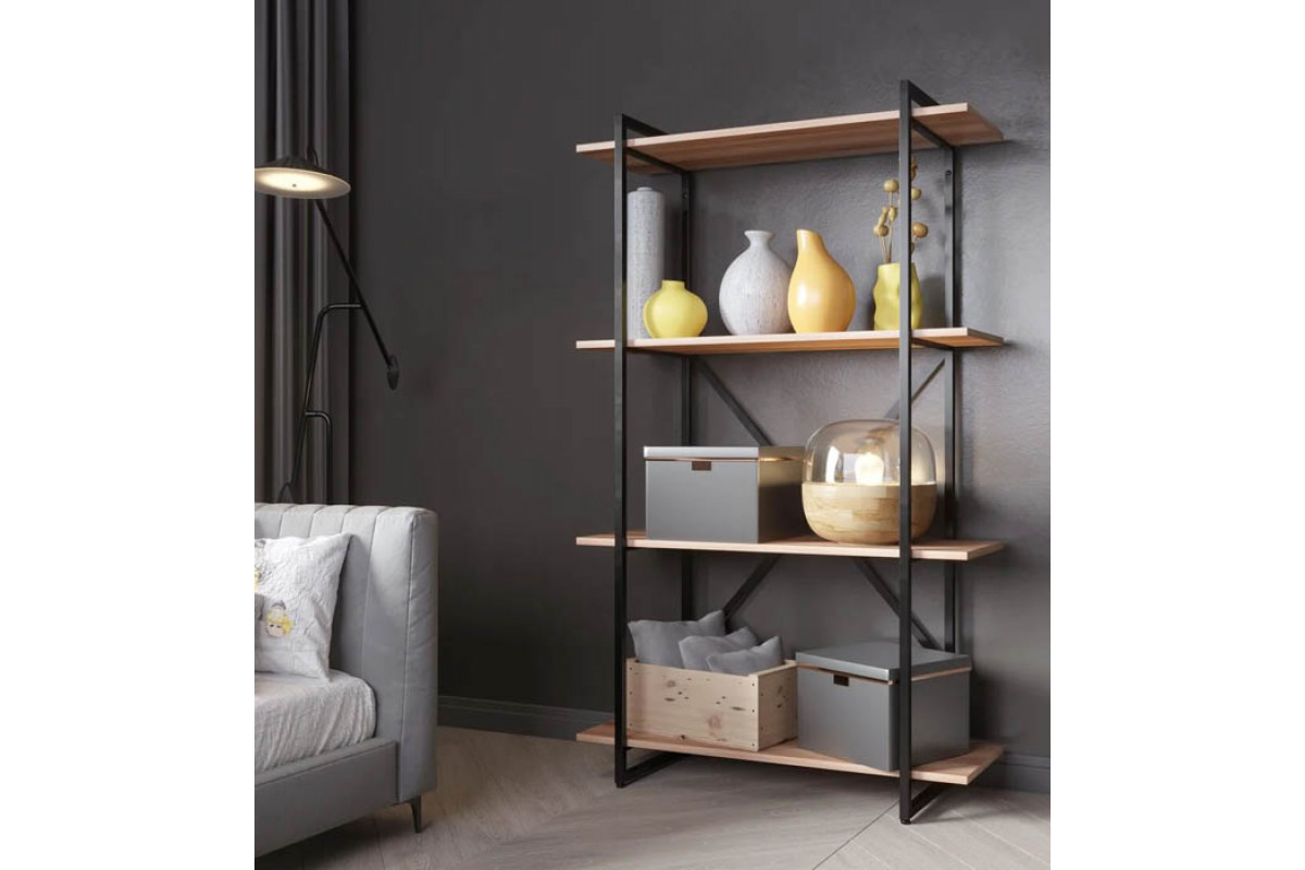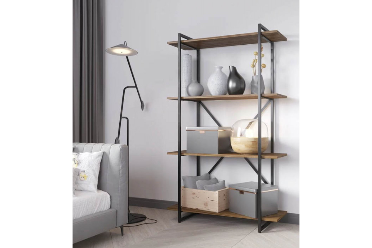 Стеллаж GUTTA 151х92х34 см — это стильное решение для вашего интерьера в стиле лофт ( loft ). Он отличается прочностью и надежностью благодаря прочному трубному каркасу, который обеспечивает дополнительную жесткость конструкции. В комплекте идут четыре полки из ЛДСП толщиной 16 мм, которые представлены в цветах коричневый, патина и эвок. Каркас стеллажа выполнен в черном цвете. Высота стеллажа составляет 151 см, ширина — 92 см, глубина — 34 см.