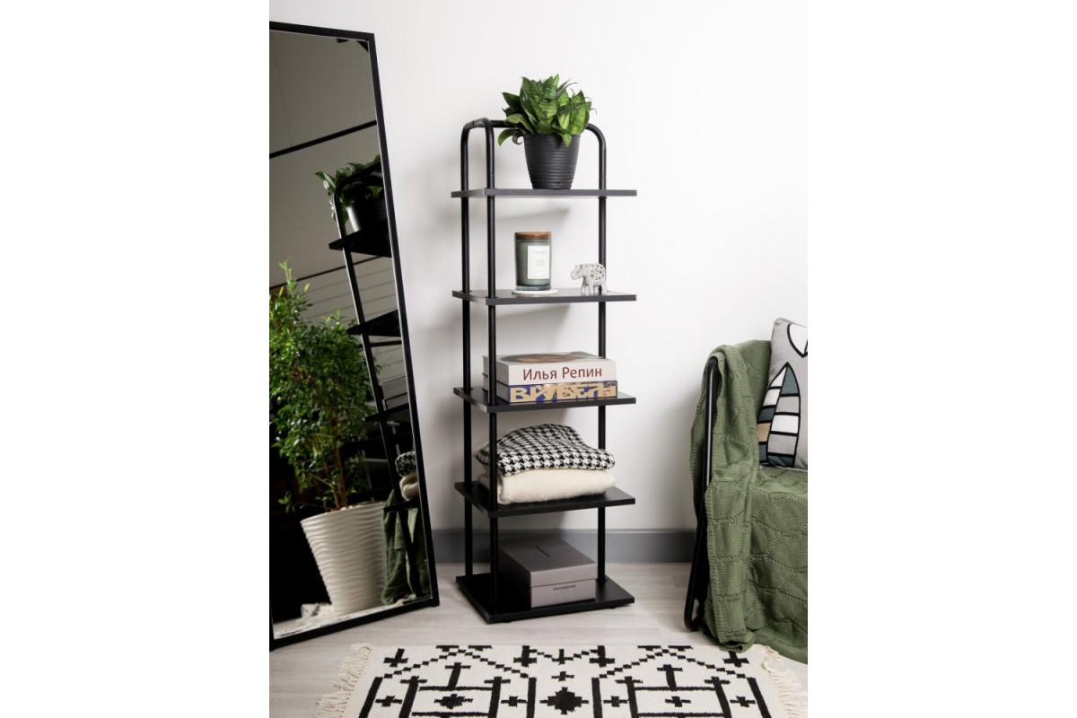 Стеллаж Отрада узкий с 5 полками из ЛДСП, 400х330х1260Н, черный/черный