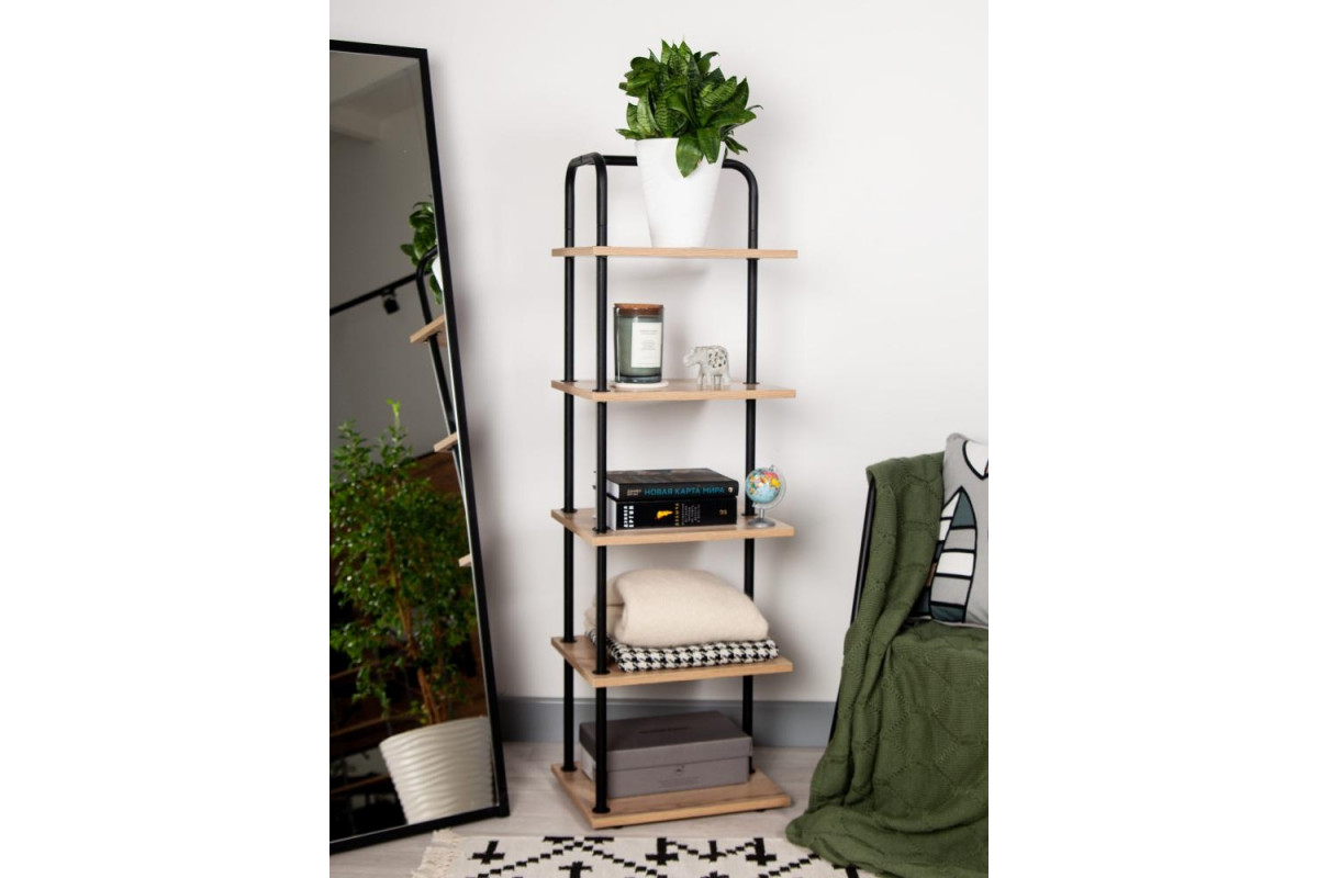Стеллаж Отрада узкий с 5 полками из ЛДСП, 400х330х1260Н, черный/дуб