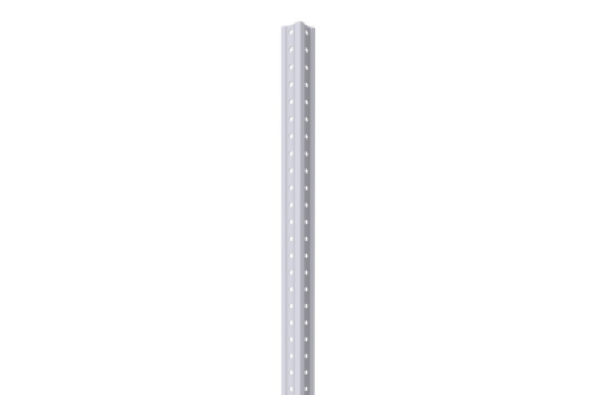 Стойка перфорированная. Шаг отверстий для крепления полок 25 мм., что позволяет подобрать оптимальное расстояние между полками при установке стеллажа. Благодаря подобной конструкции возможно соединять стойки между собой, наращивая тем самым длину стеллажа.