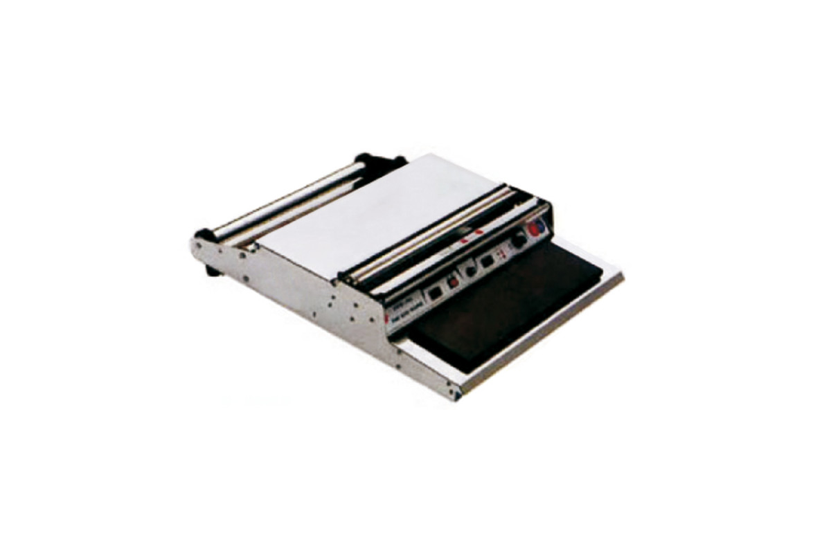 Аппарат покупают как для крупных супермаркетов, так и для небольших магазинов, кондитерских, пекарней. Модель очень удобна в использовании и транспортировке и проста в эксплуатации. Продукты упаковываются в стрейч-пленку, которая защищает продукты от влаги, пыли и другого воздействия. Продукт помещают на рабочую поверхность, с двух сторон которой расположены ролики. Между роликами протягивается пленка. После упаковки продукта термонож обрезает пленку, а края припаиваются на горячей поверхности стола. Максимальная ширина пленки – 450 мм.