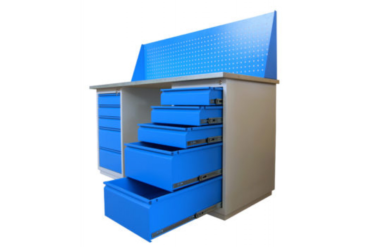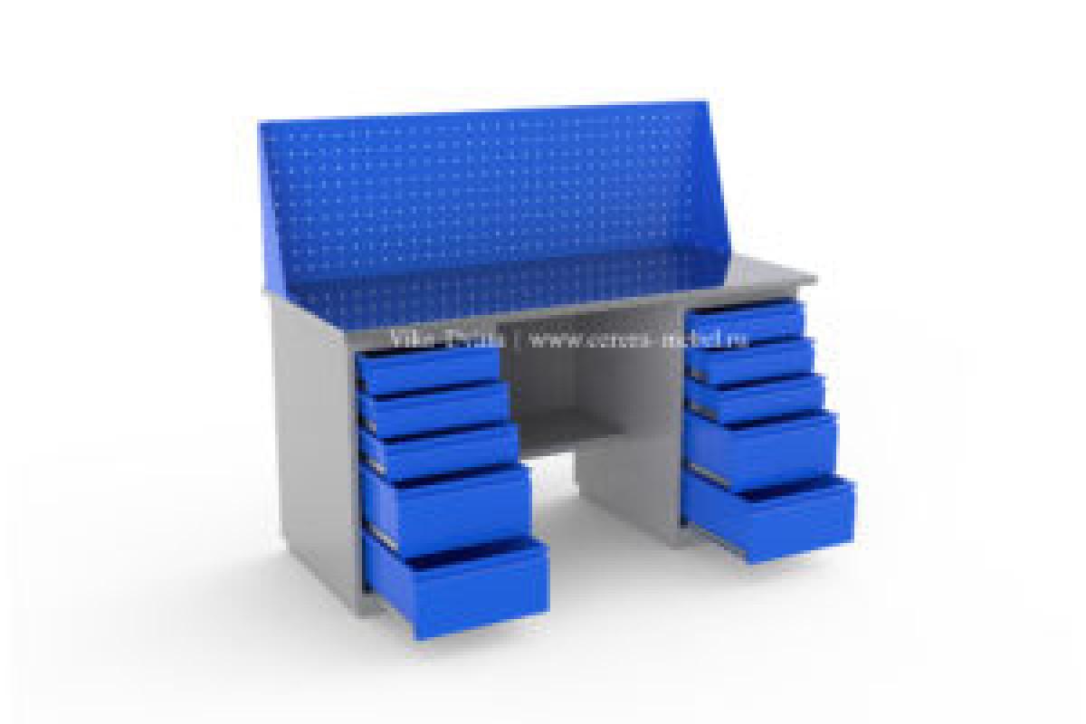 Верстак изготовлен из листовой холоднокатаной стали толщиной не менее 1 мм.