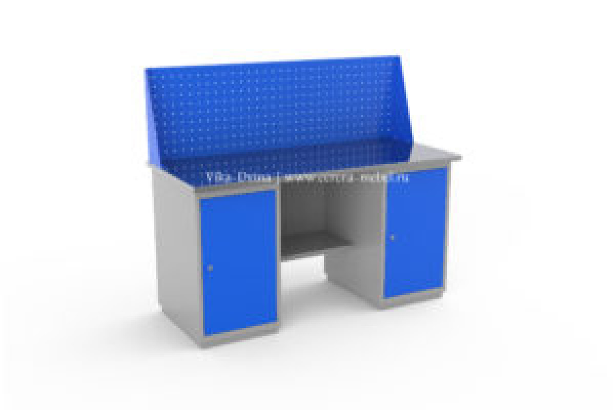 Верстак слесарный двухтумбовый серии ВС-1800/Т1/Т1 (№811) предназначен для выполнения слесарных, сборочных, рихтовочных, доводочных, монтажных, регулировочных, наладочных и столярных работ в цехах производственных предприятий, автосервисах, автомастерских и т.д. Размер верстака (ВхШхГ): 869х1800х700 мм.