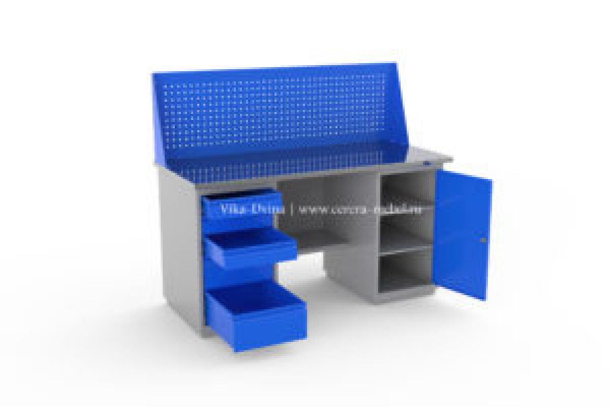 Верстак изготовлен из листовой холоднокатаной стали толщиной не менее 1 мм.
