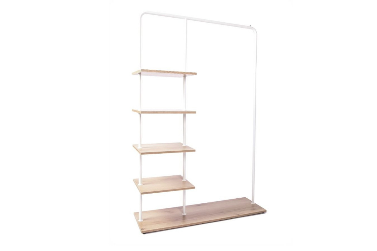 Вешалка напольная Отрада с пятью полками для одежды и обуви из ЛДСП, 1000х330х1500Н, белая/дуб
