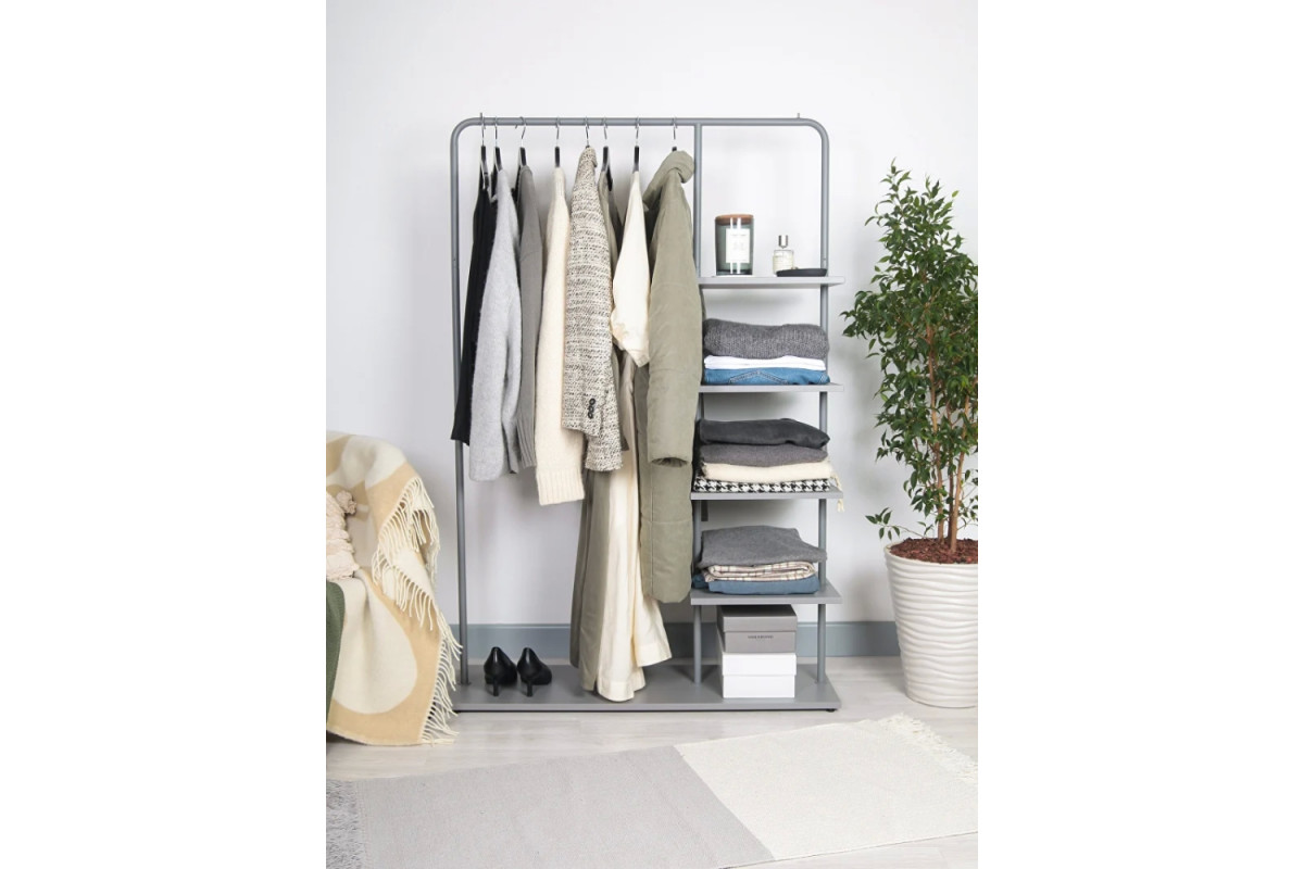 Вешалка напольная Отрада с пятью полками для одежды и обуви из ЛДСП, 1000х330х1500Н, серый/серый