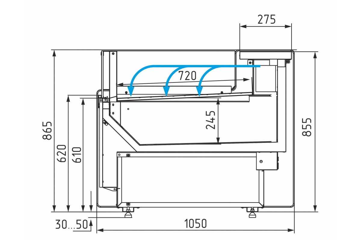 Отдельностоящие витрины приобретаются только вместе с боковинами. При заказе нескольких витрин с одинаковым температурным режимом для установки в линию достаточно заказать 2 боковины на всю линию.
