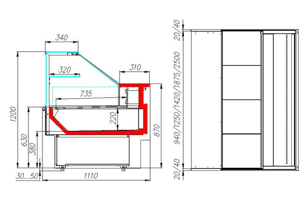 - Глубина выкладки 735 мм + одна неохлаждаемая полка 320 мм;