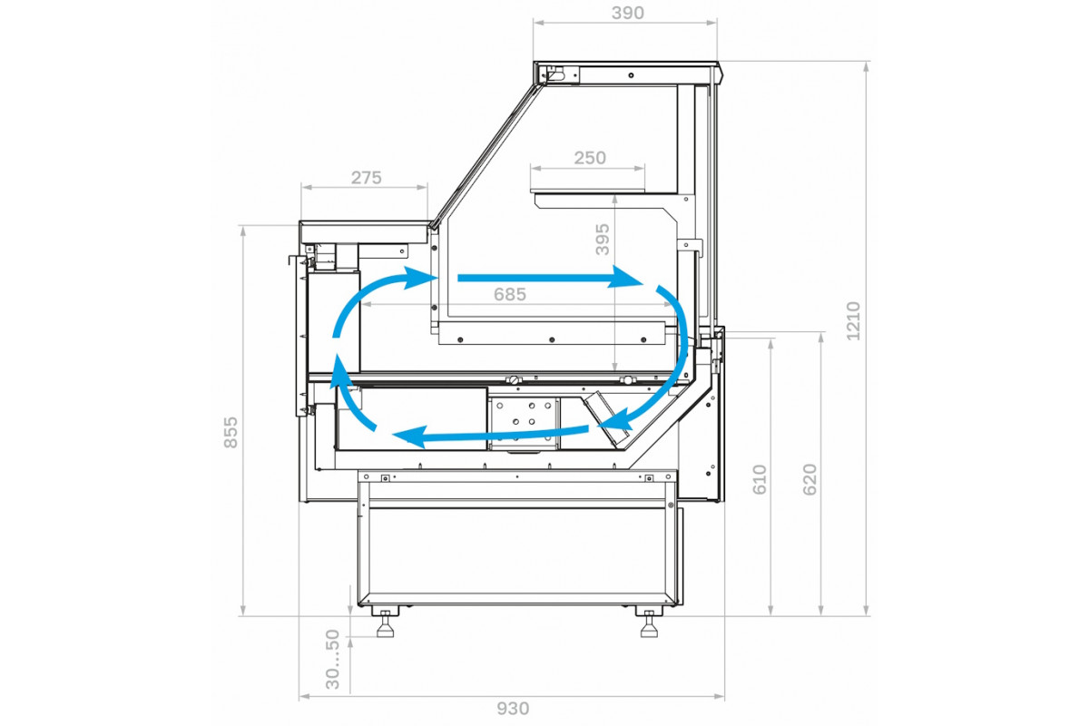 Модель без боковин предназначена для установки нескольких витрин в линию и не может использоваться как отдельностоящая. При заказе нескольких моделей для установки в линию достаточно приобрести две боковины: для первой и последней витрины.