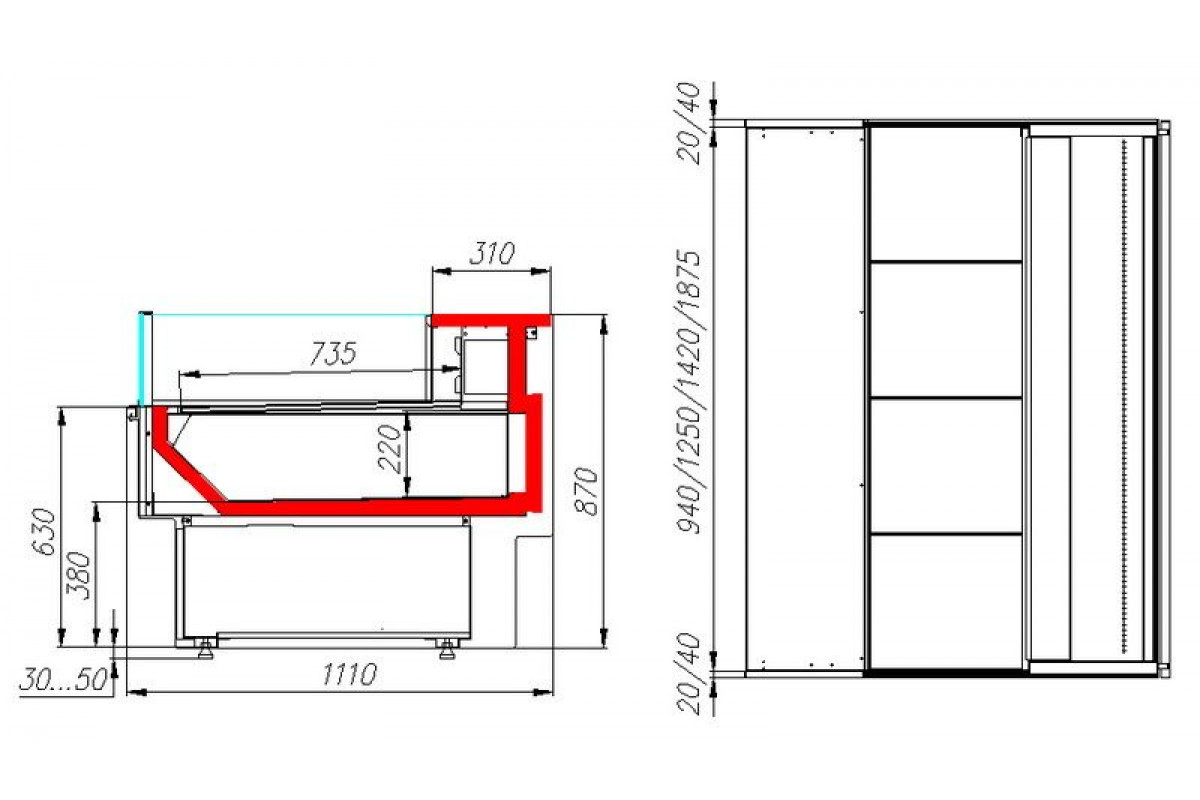 - Глубина выкладки 735 мм;