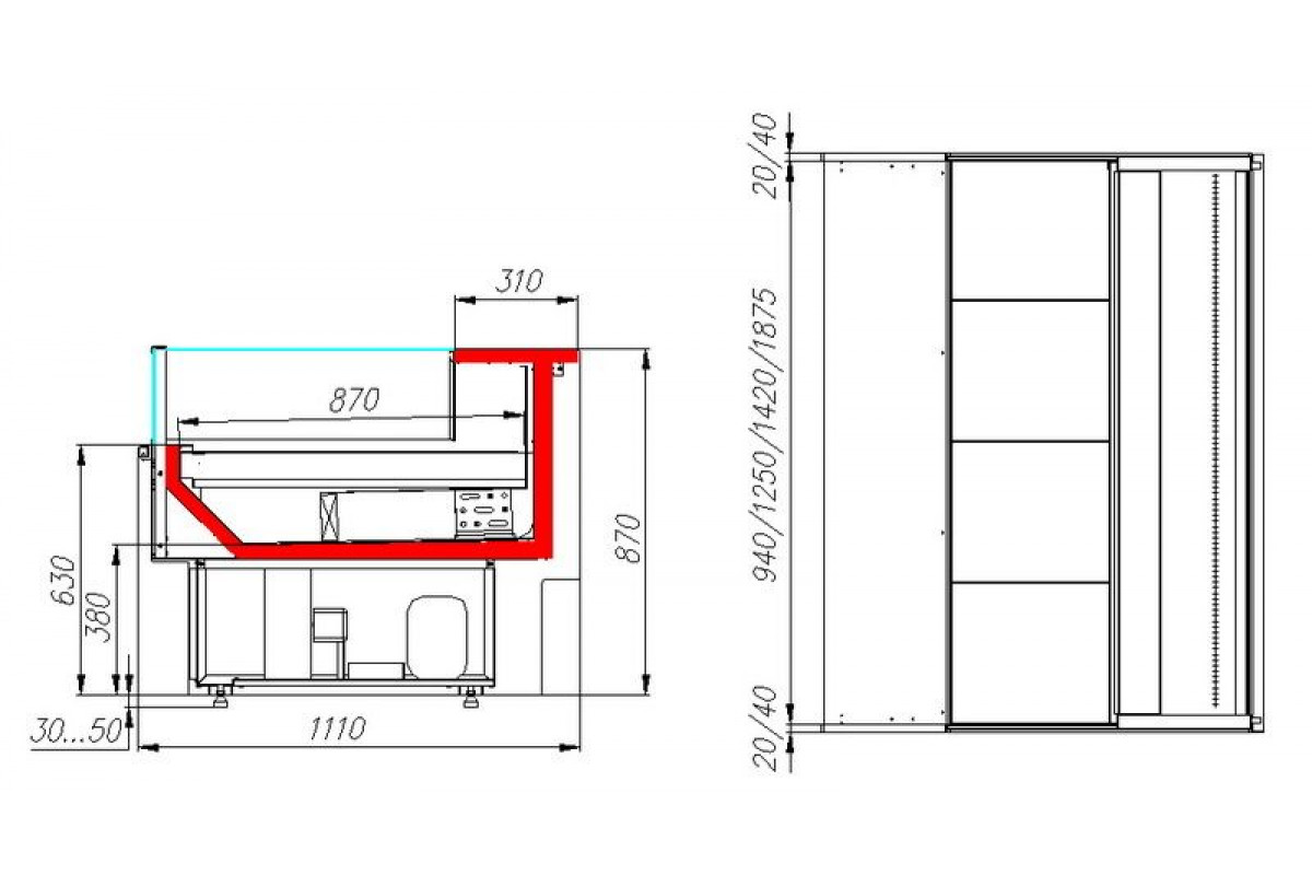 - 2х ступенчатые поддоны для выкладки. Общая высота поддона -120 мм, общая глубина-480 мм.