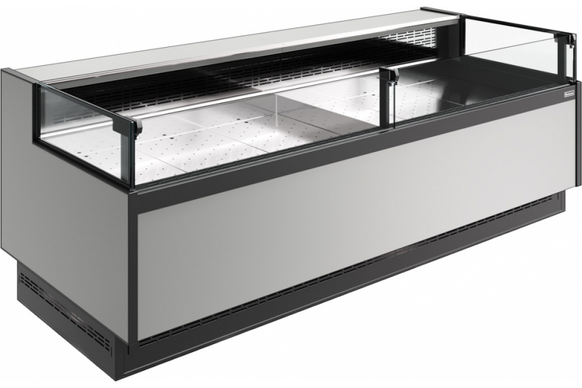 Модель без боковин предназначена для установки нескольких витрин в линию и не может использоваться как отдельностоящая. При заказе нескольких моделей для установки в линию достаточно приобрести две боковины для первой и последней витрины.