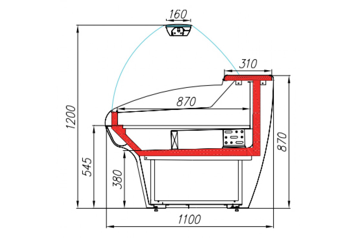 Витрина холодильная открытая с выносным агрегатом Carboma GC110 VM 2,0-2-1 (ВХСо-2,0 Carboma GC110 (динамика, без боковин, 1005 венге)